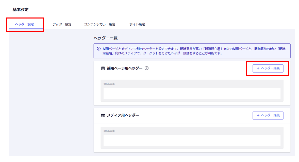 ②ヘッダー設定より、「ヘッダー編集」をクリック。