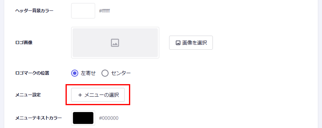 ③メニュー設定より、「メニューの選択」をクリック。