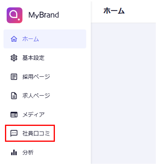 ①MyBrand管理画面より、「社員口コミ」をクリック。