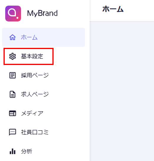 ①MyBrand管理画面より、「基本設定」をクリック。